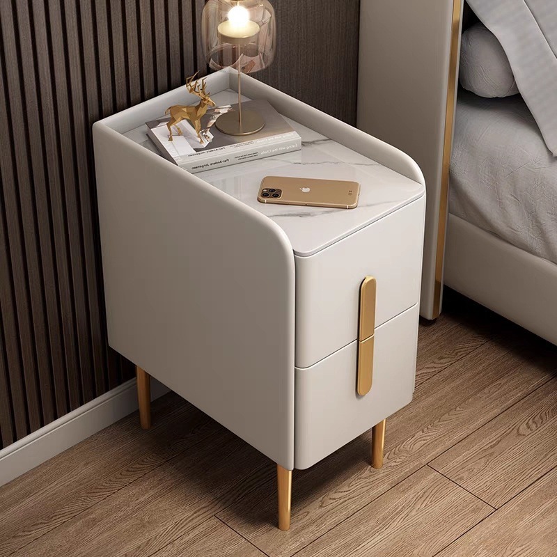 全实木岩板皮质极简约现代迷你床头柜卧室智能网红轻奢超窄床边柜