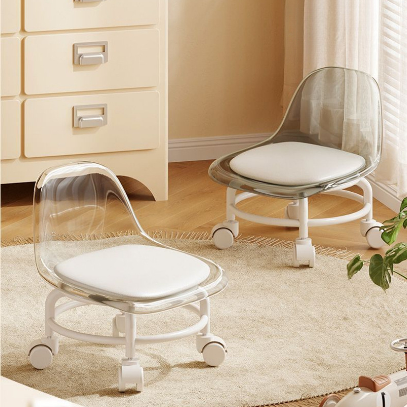 亚克力小凳子静音带万向轮儿童学步凳网红小椅子滑轮矮凳美缝地凳