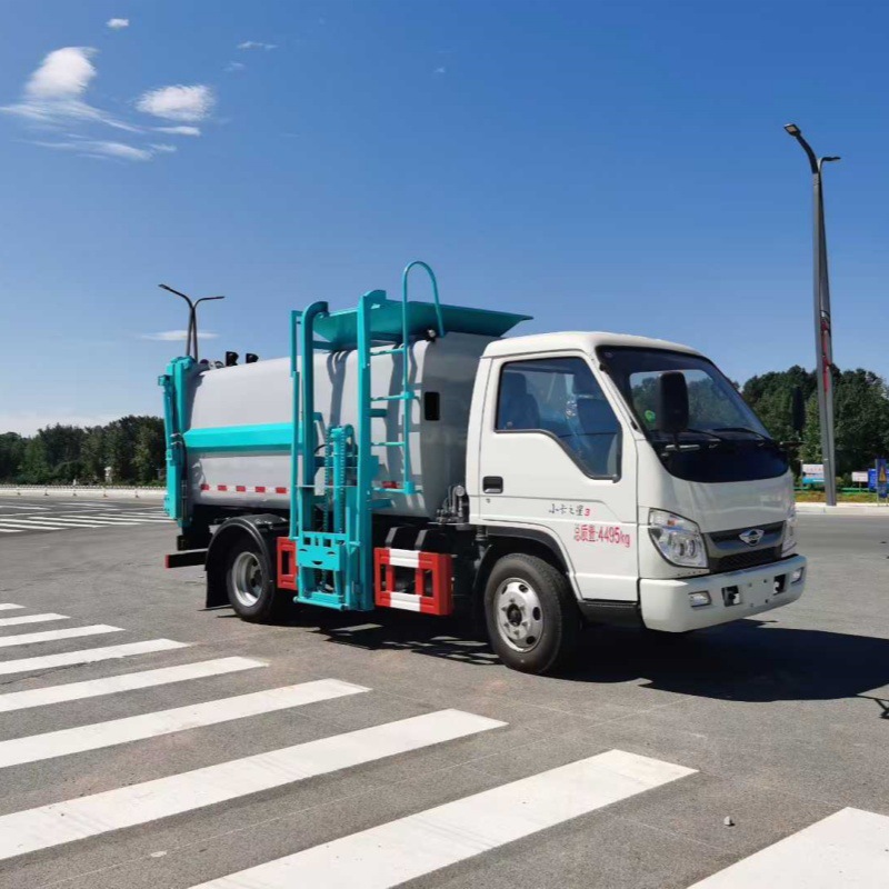福田小卡之星2挂桶式垃圾车 5方蓝牌街道福田垃圾车 环卫自装卸车