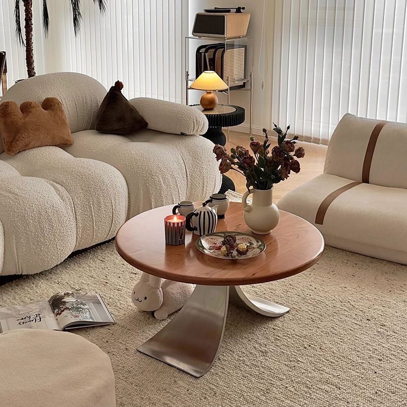 中古风实木圆形茶几客厅家用圆形餐桌简约现代设计师款小户型矮桌