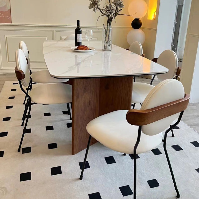 奶油风岩板餐桌圆形法式白色桌子圆桌洽谈桌德利丰家用小户型饭桌