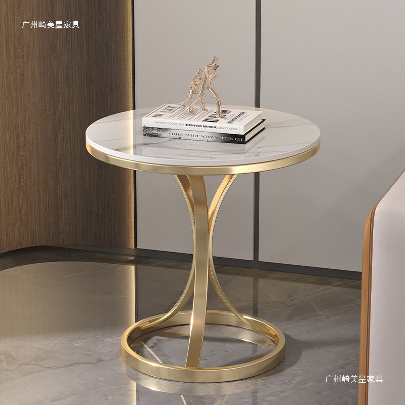 茶几轻奢简约现代客厅家用小户型北欧边几大理石岩板圆形小茶几桌