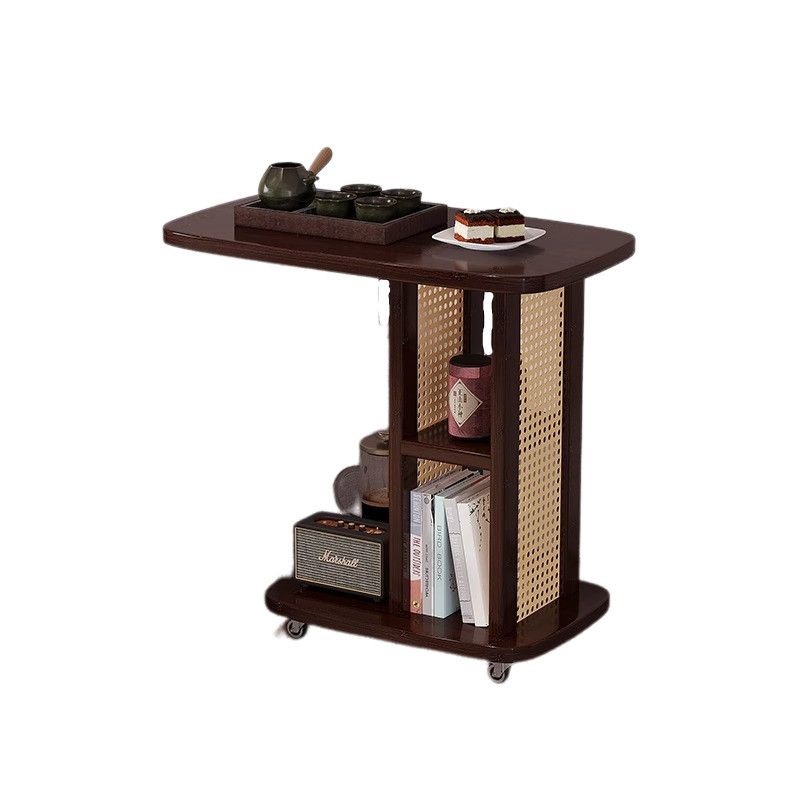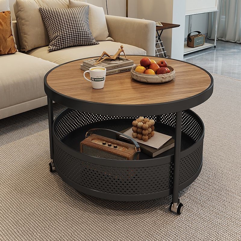 意式极简岩板茶几小户型客厅家用轻奢圆形中古风新款可移动小推车