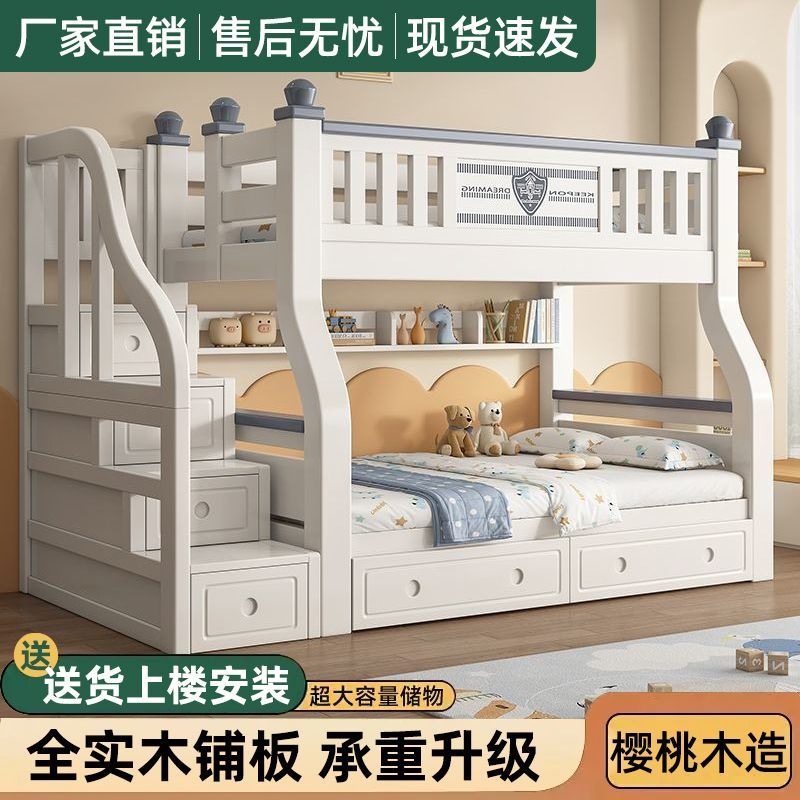 樱桃木儿童床儿童床上铺床双层床两层上下床实木子母加厚高低加粗