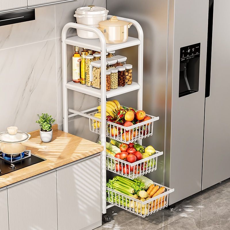厨房夹缝菜篮子置物架落地多功能家用果蔬菜锅具微波炉架子收纳架
