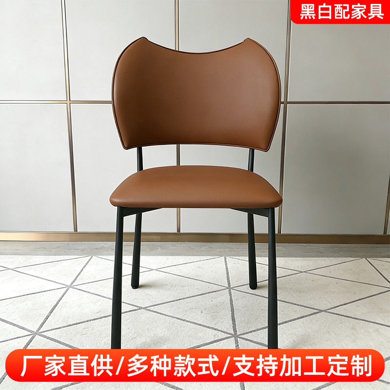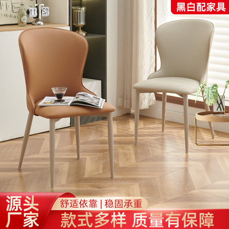 意式餐椅家用北欧轻奢现代简约靠背椅咖啡厅洽谈椅子皮革加厚凳子