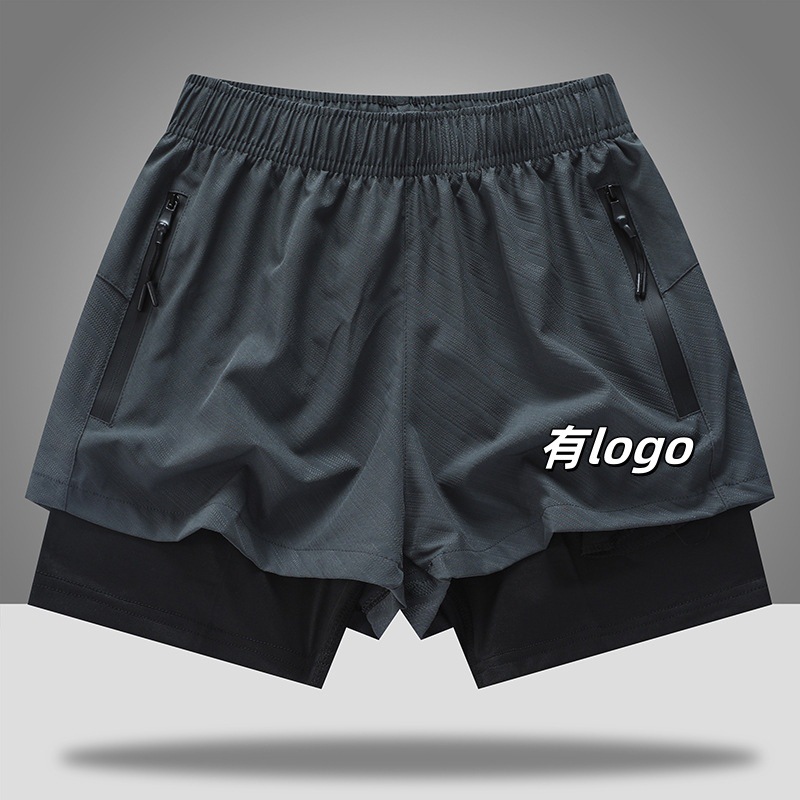 厂家直发短裤透气冰丝弹力速干运动跑步假两件短裤健身双层短裤