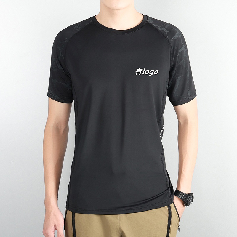 厂家现货LOGO夏季新款男士速干透气冰丝短袖运动户外休闲跑步T恤