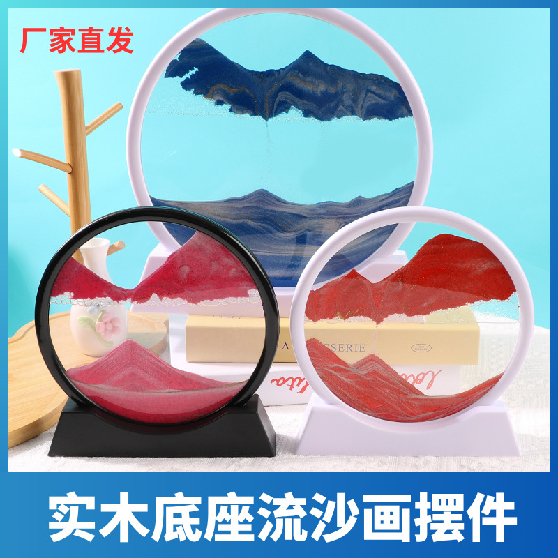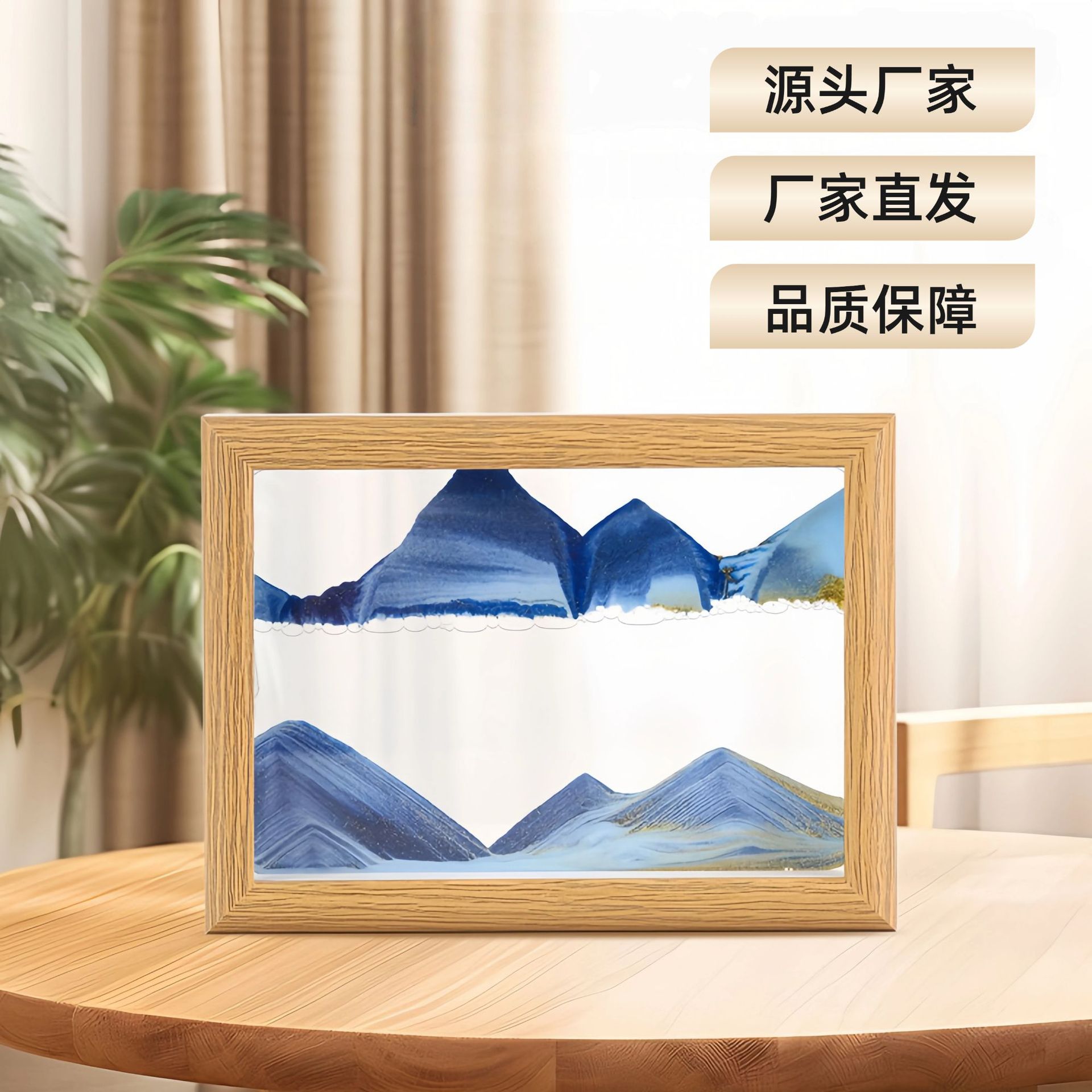 厂家直发实木底座3D流沙画办公室桌面沙漏客厅摆件装饰品乔迁礼物