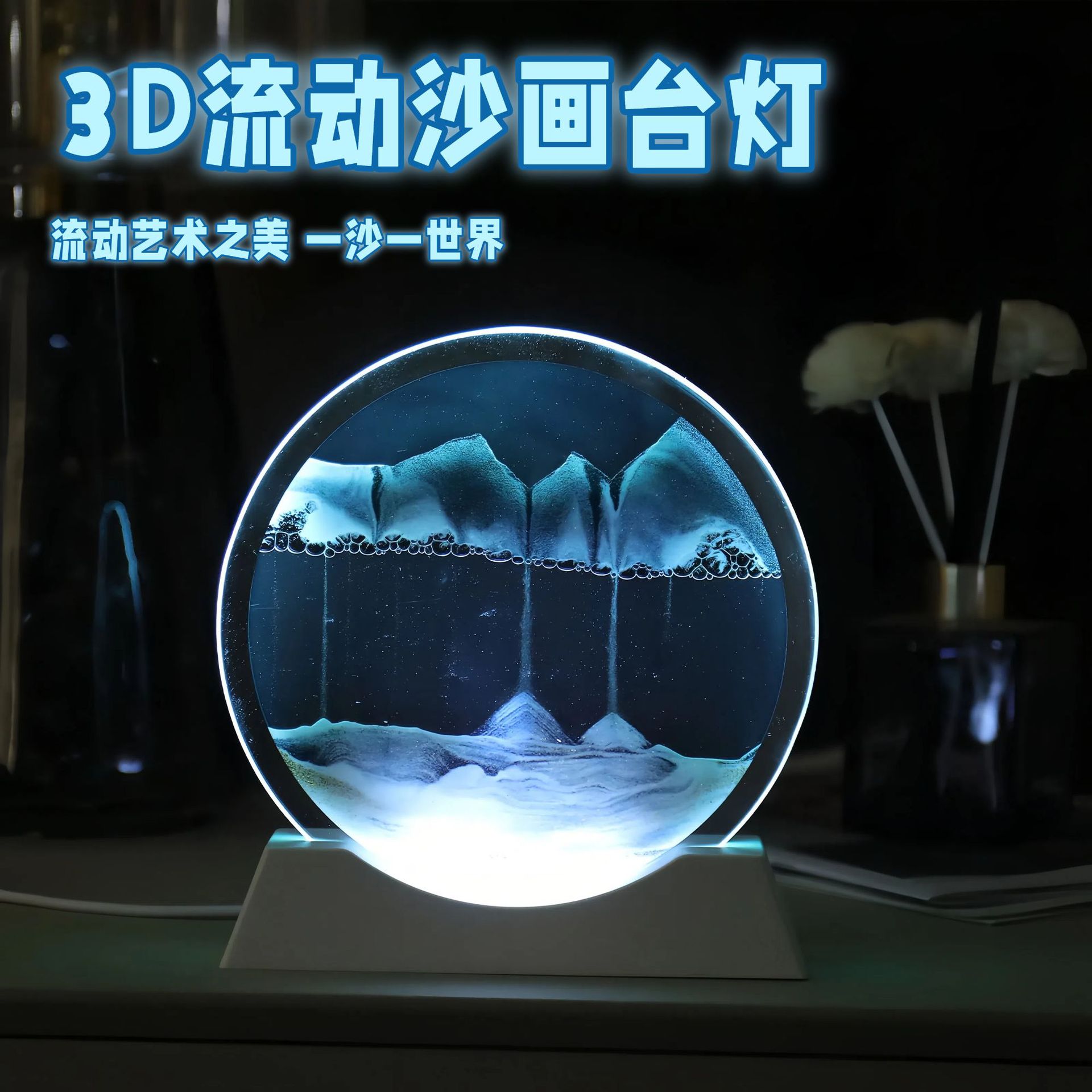 创意流沙灯摆件沙漏沙画3d小夜灯氛围解压台灯卧室睡眠床头灯礼品