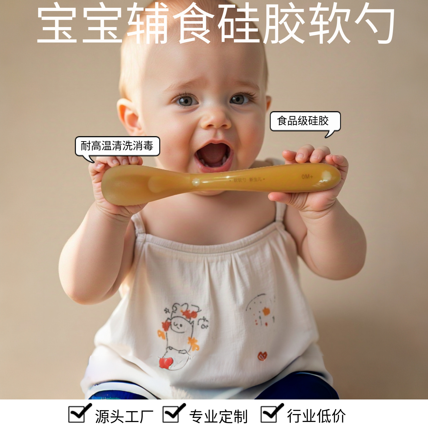 婴儿硅胶勺儿童餐具液态硅胶喂养勺辅食调羹宝宝训练汤勺批发