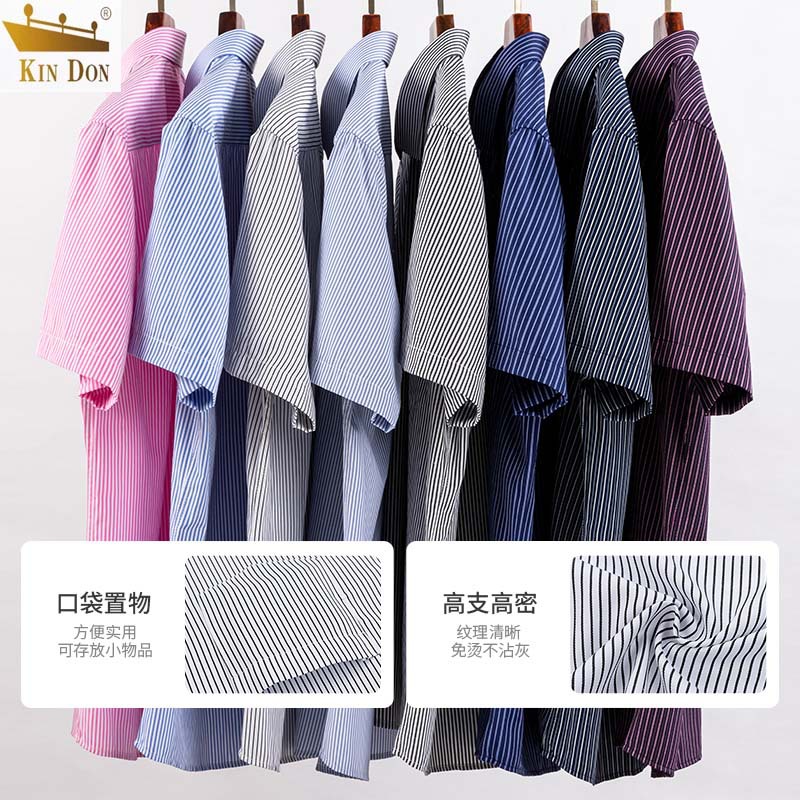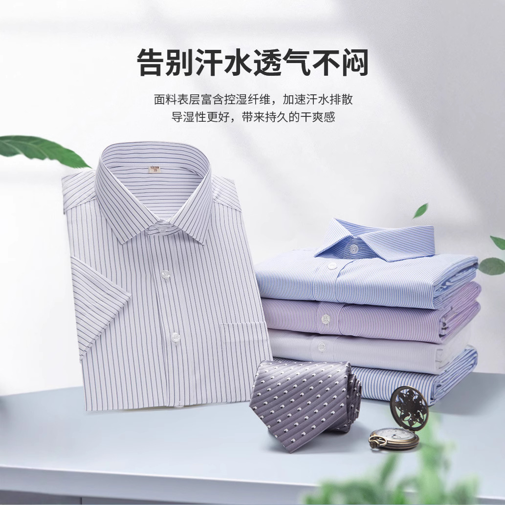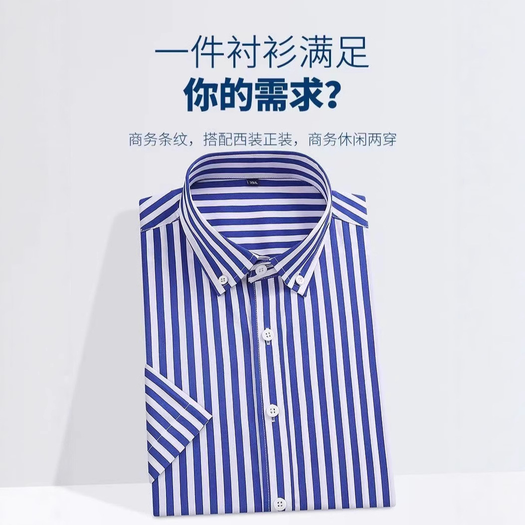 爆款短袖衬衣夏季男士免烫商务衬衫工装条纹40棉源头工厂可定制