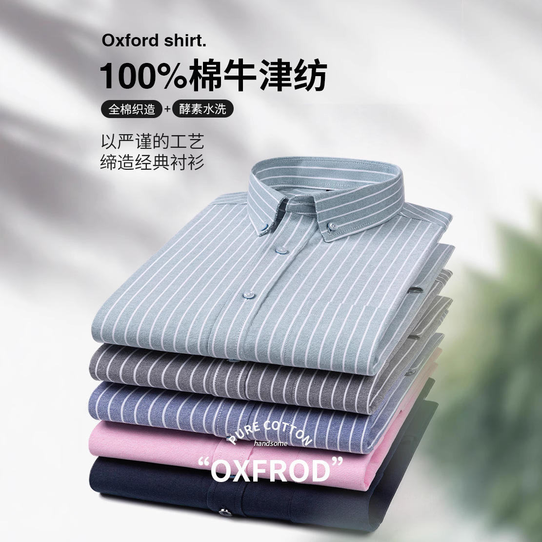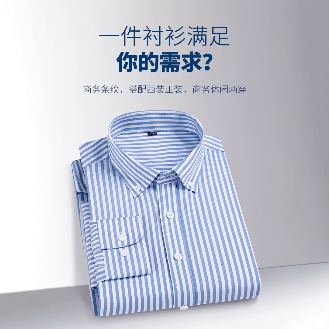 爆款长袖衬衣春款男士免烫商务衬衫工装条纹抗皱源头工厂可印logo