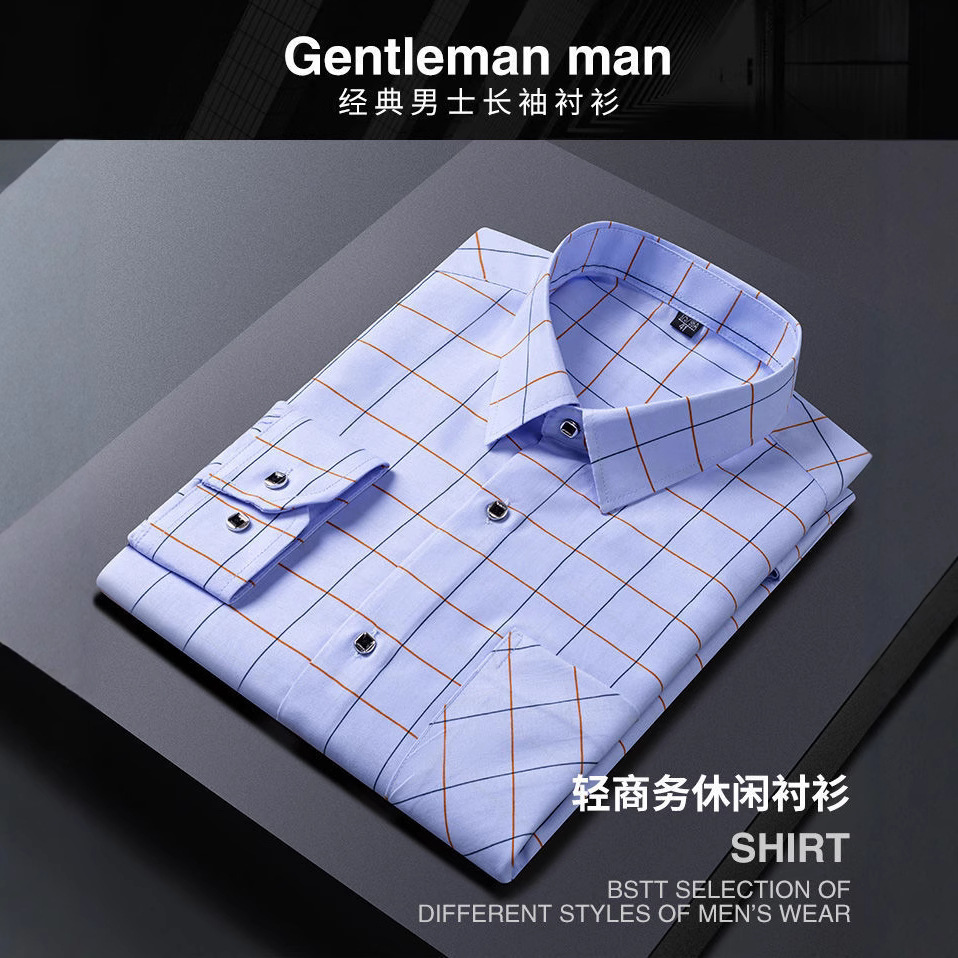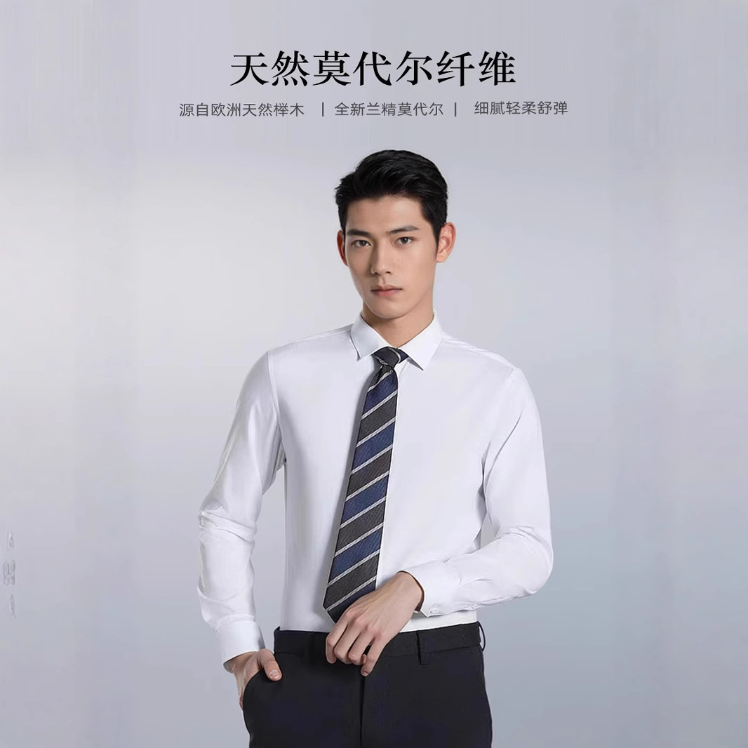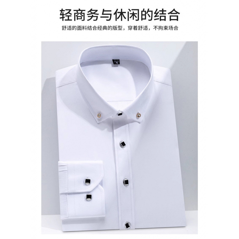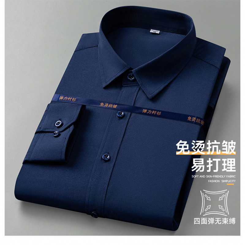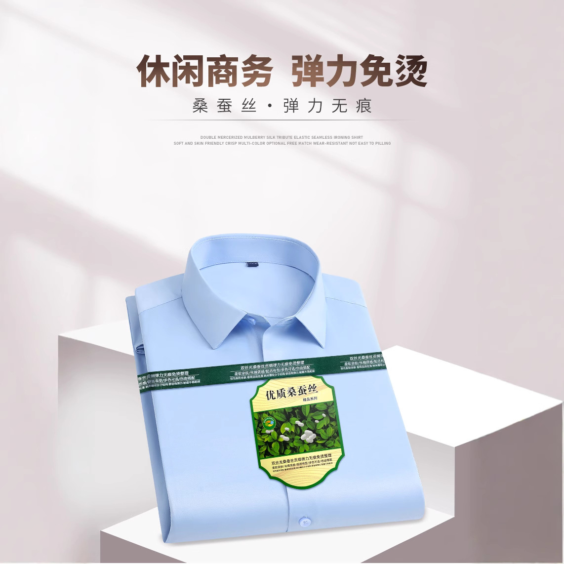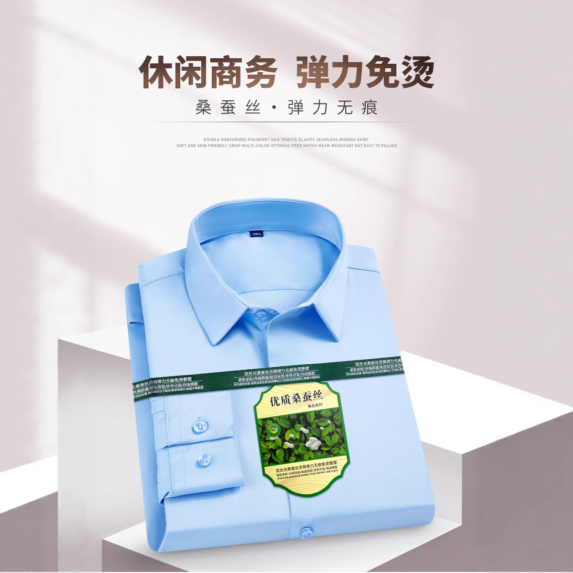 新款衬衫男士商务免烫职业抗皱衬衣休闲长袖商务桑蚕丝免烫