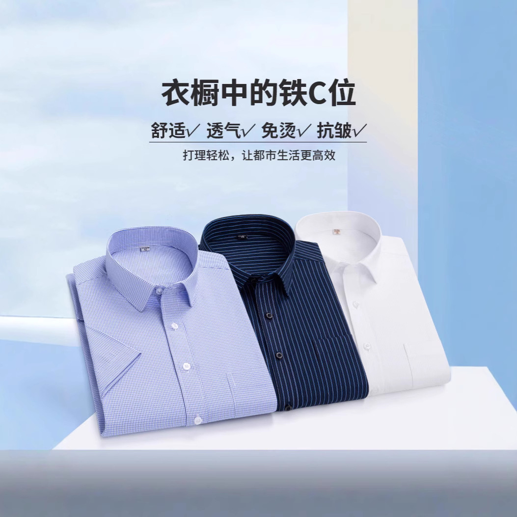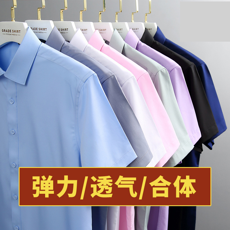 衬衫男士商务免烫职业抗皱衬衣休闲半袖商务衬衫免烫新款白衬衣
