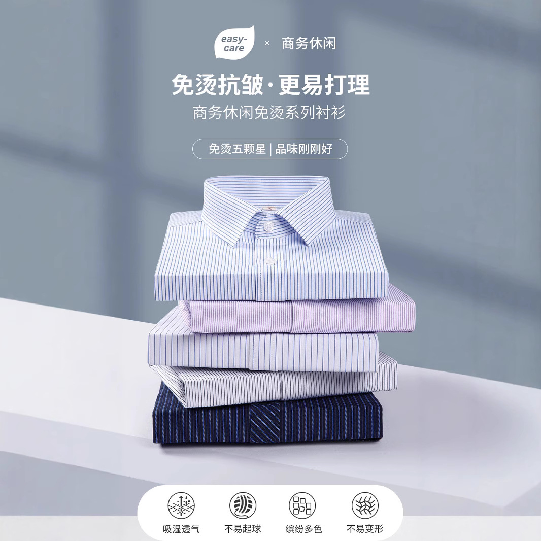 休闲条纹衬衫男士春秋商务免烫百搭韩版修身短袖四季职业正装