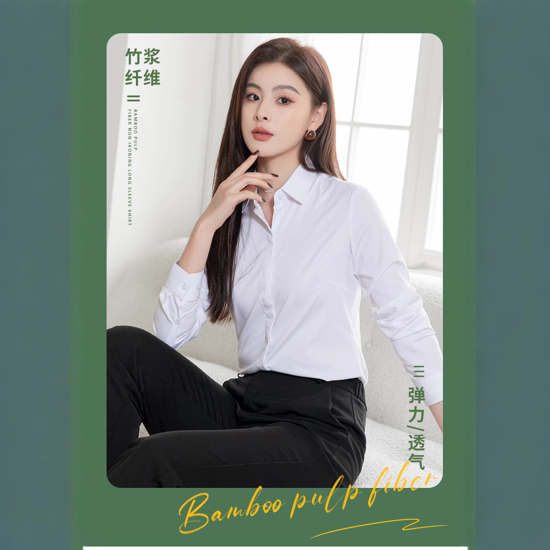 女款长袖商务透气高弹公司服装夏季穿搭正装衬衣衬衫竹纤维工厂发