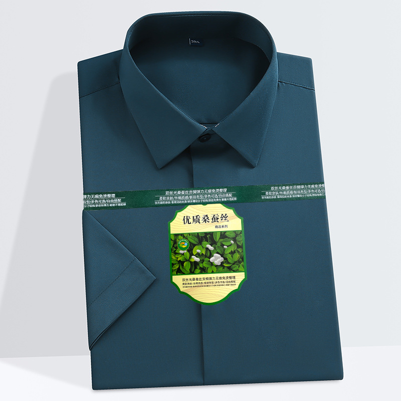 爆款短袖衬衣夏季男士免烫不易变形商务衬衫桑蚕丝源头工厂可定制