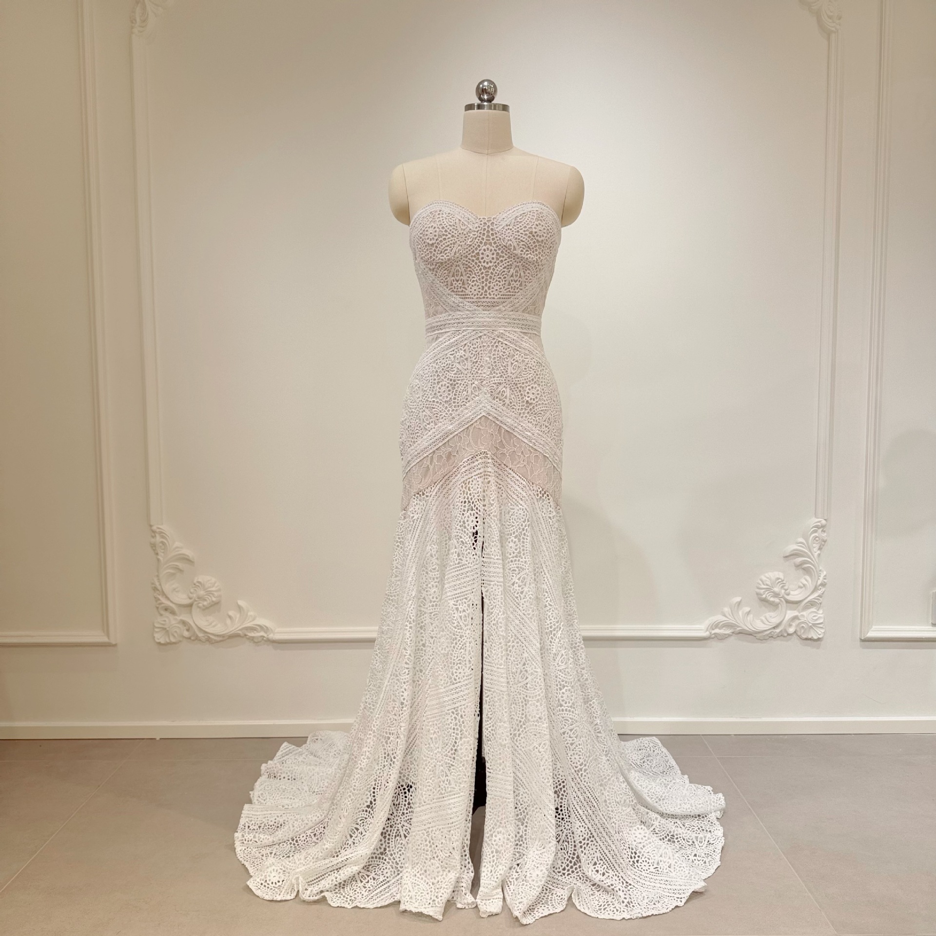 欧美时尚名模浪漫唯美婚纱抹胸性感蕾丝修身鱼尾礼服高级感订婚服