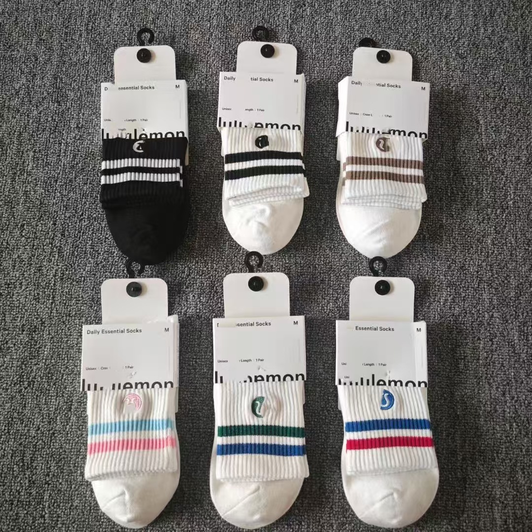 刺绣款四季款男女同款中筒袜ins潮休闲条纹运动健身袜瑜伽袜吸汗