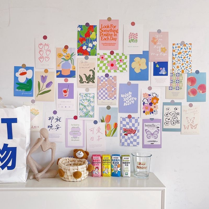 30张卡片套装 ins风小清新花朵卡片卧室房间宿舍背景墙装饰海报画