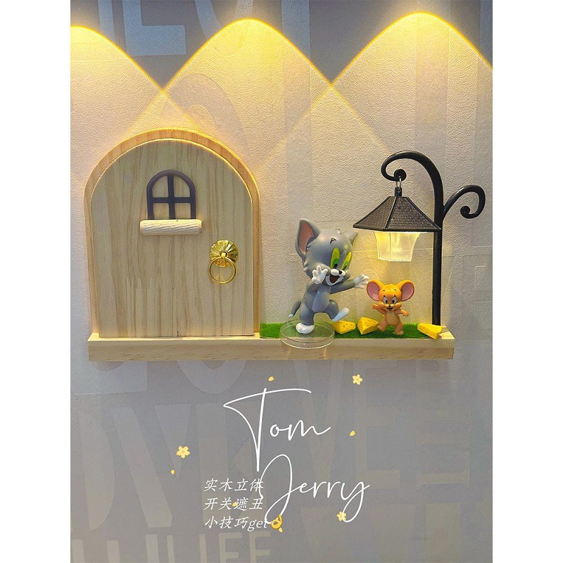 猫和老鼠门洞装饰实木开关贴儿童房灯开关墙贴保护套插座装饰面板