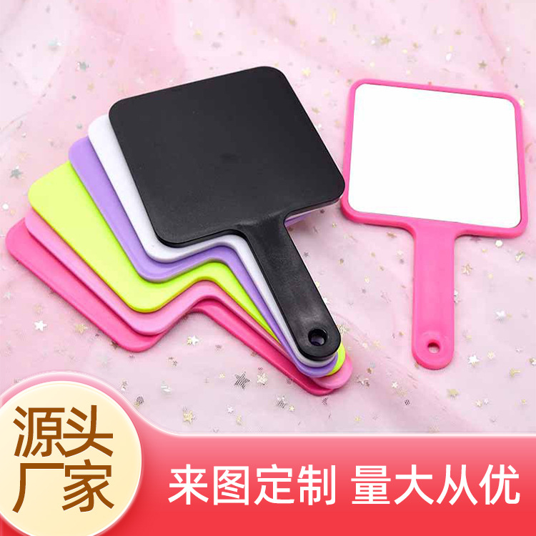 定制手持镜子电商直销 抖音直播福利手柄镜 大号方形化妆镜子现货