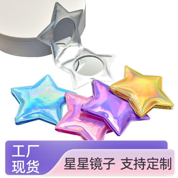跨境小镜子便携镜子简约迷你化妆镜星星折叠随身补妆镜源头厂家