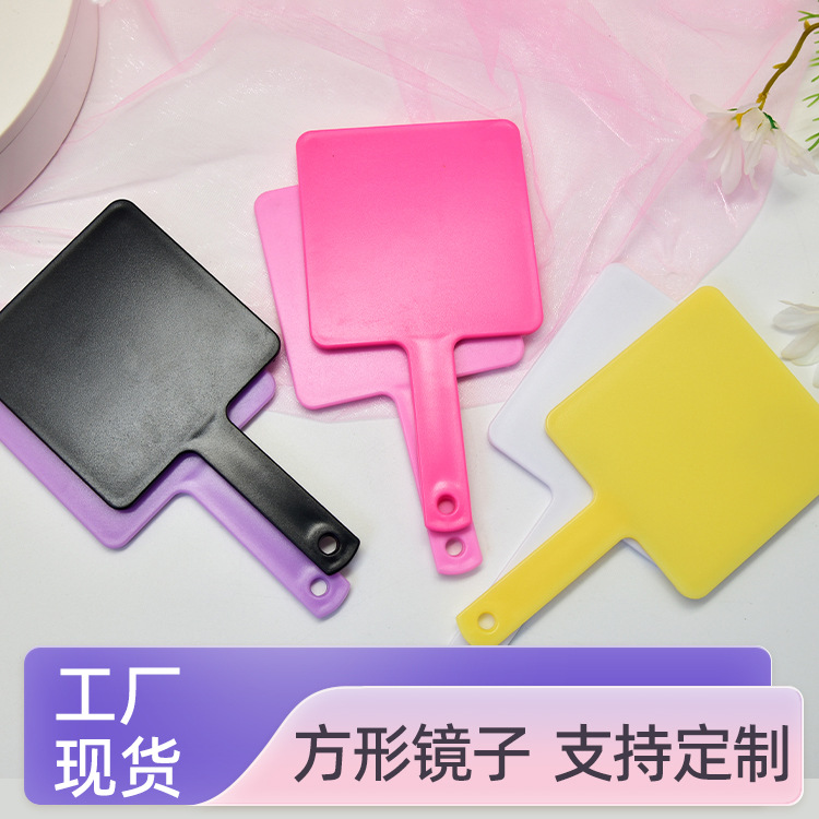 手持镜定制方形手柄化妆镜广告小镜子便携镜可印LOGO美妆塑料镜