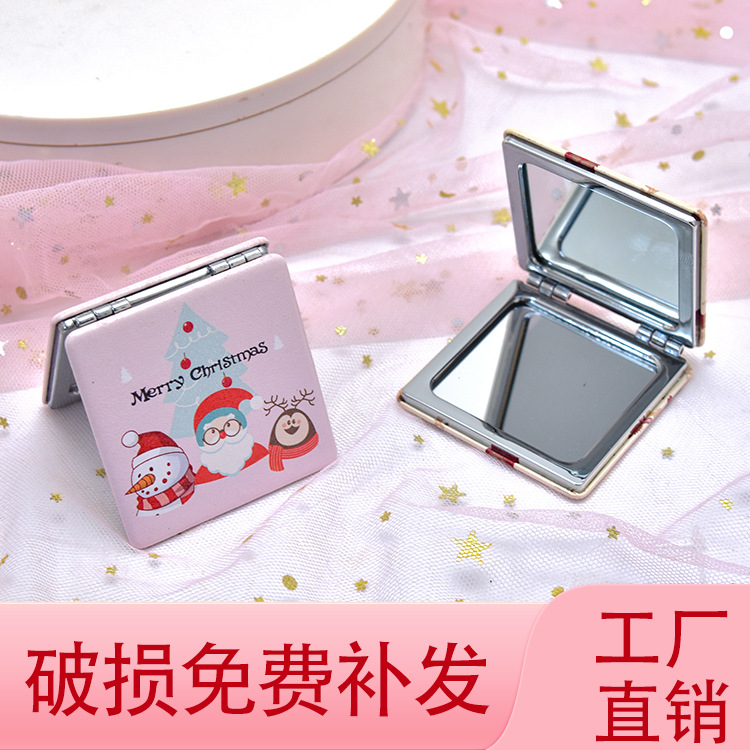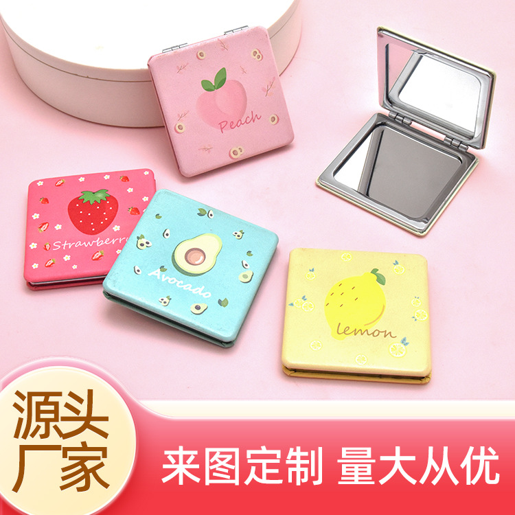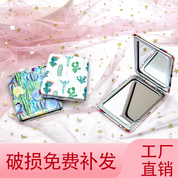 工厂批发正方形pu皮革便携折叠双面化妆美容小镜子
