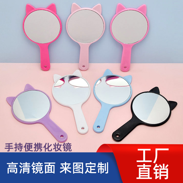 新款定制创意猫咪手持化妆镜手柄镜高清便携补妆镜厂家定制