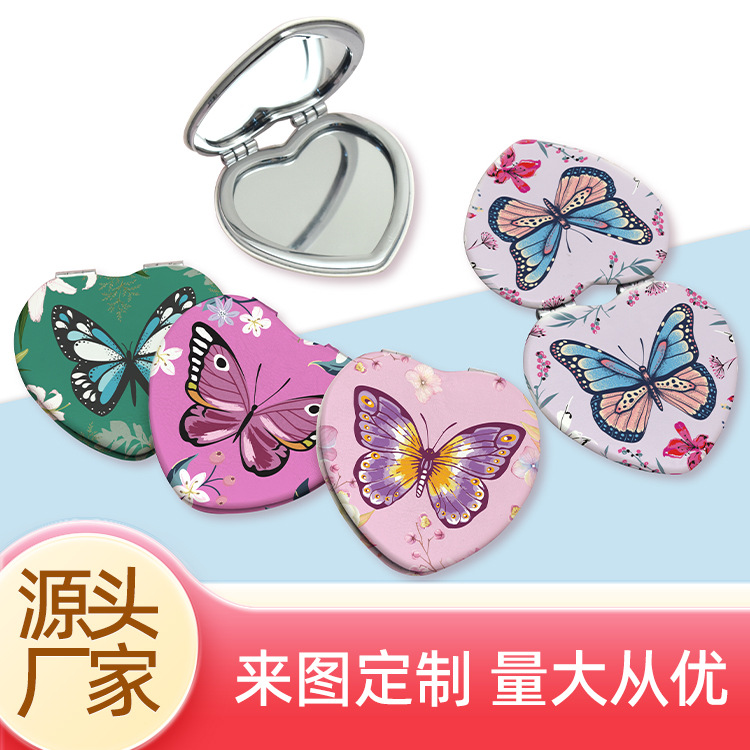便携小镜子女生可爱卡通双面化妆镜随身心形折叠镜补妆礼品皮镜