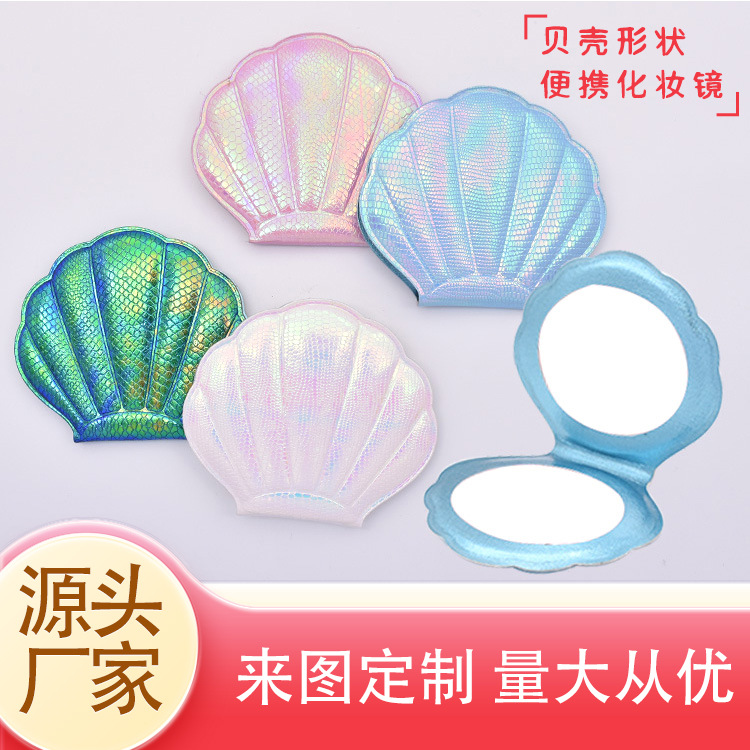 小镜子新款定制便携贝壳化妆镜折叠高颜值学生随身可爱现货迷你镜