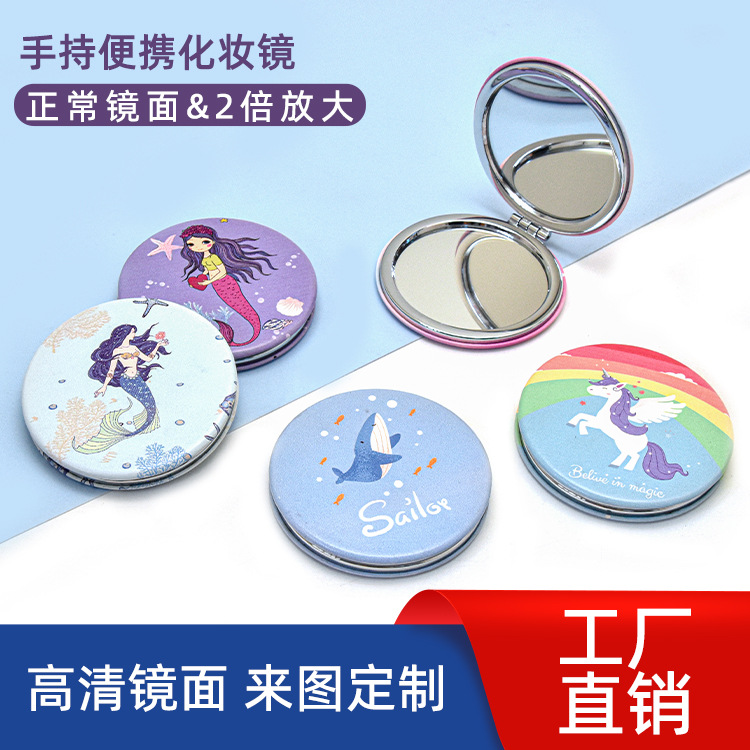 定制白皮化妆镜批发PU折叠口袋镜随身镜子便携diy创意学生小镜子