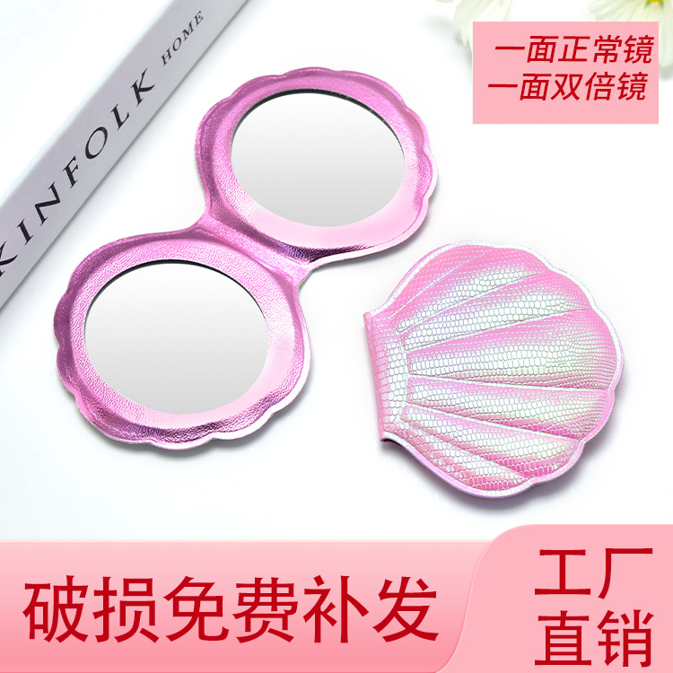 高清折叠化妆镜随身便携贝壳形状梳妆镜宿舍学生桌面小镜子批发