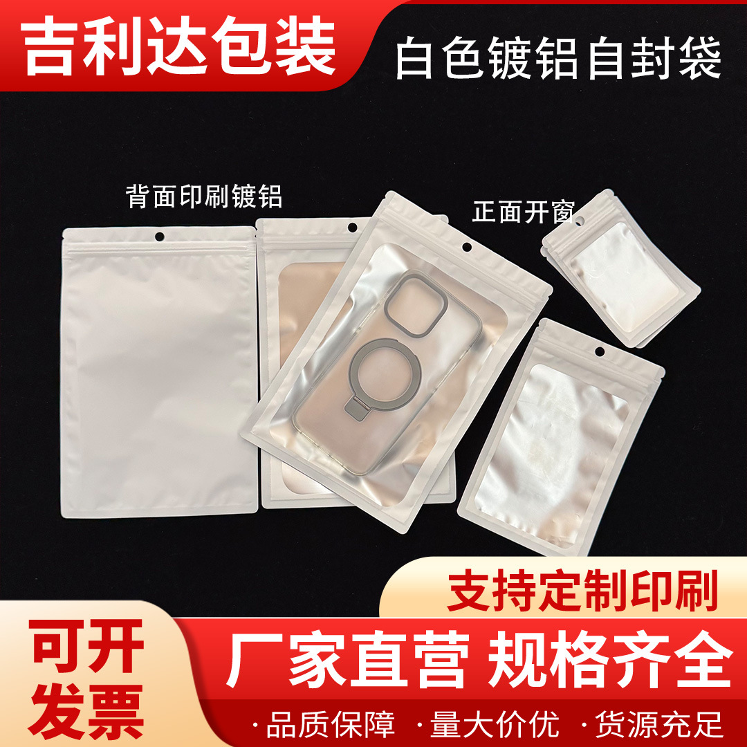 白色镀铝开窗手机壳自封袋饰品美妆品精美包装袋食品密封袋磨砂