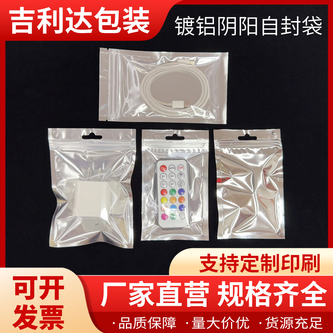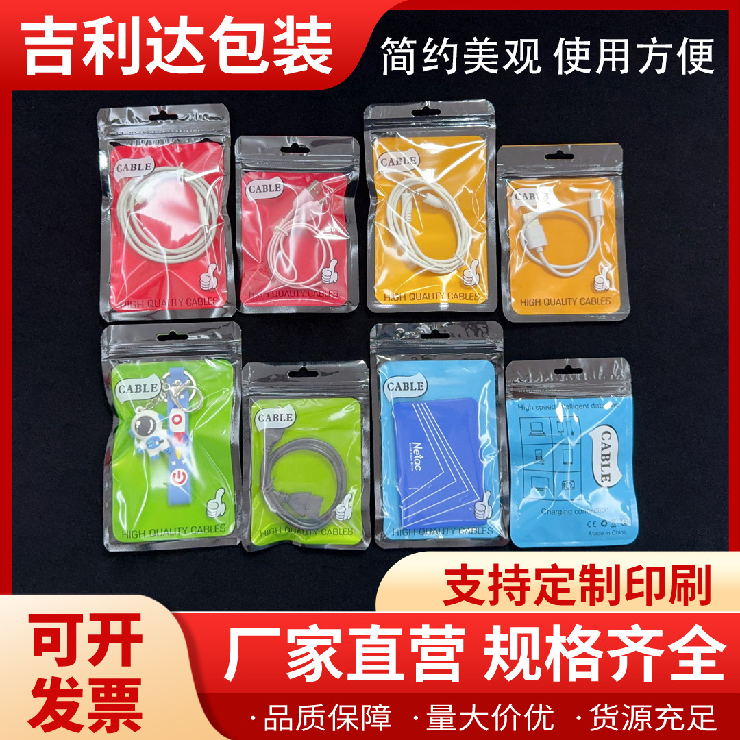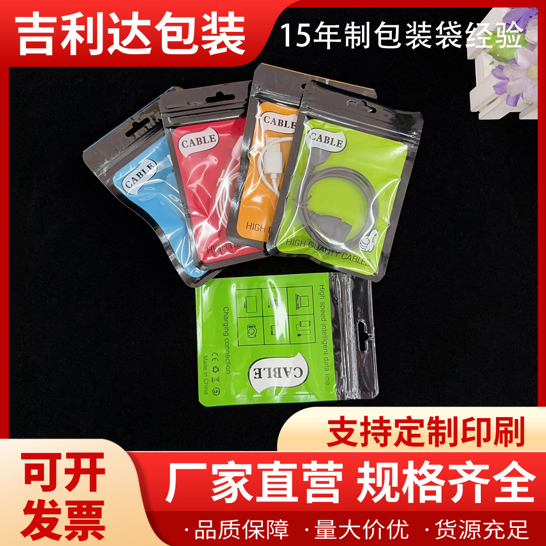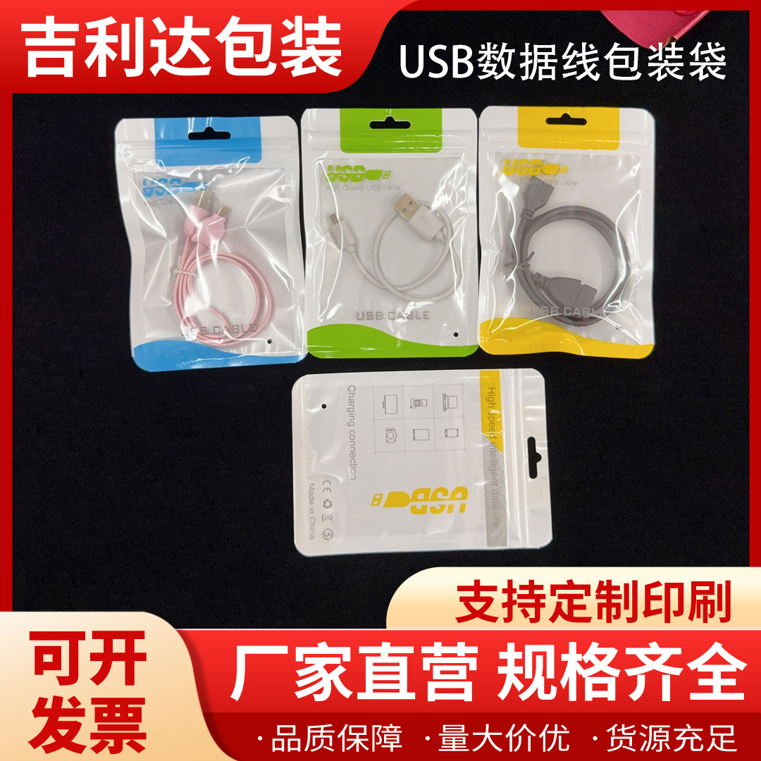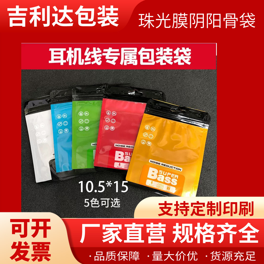 珠光膜自封口彩色印刷阴阳骨包装袋透明面USB数据线通用压骨袋