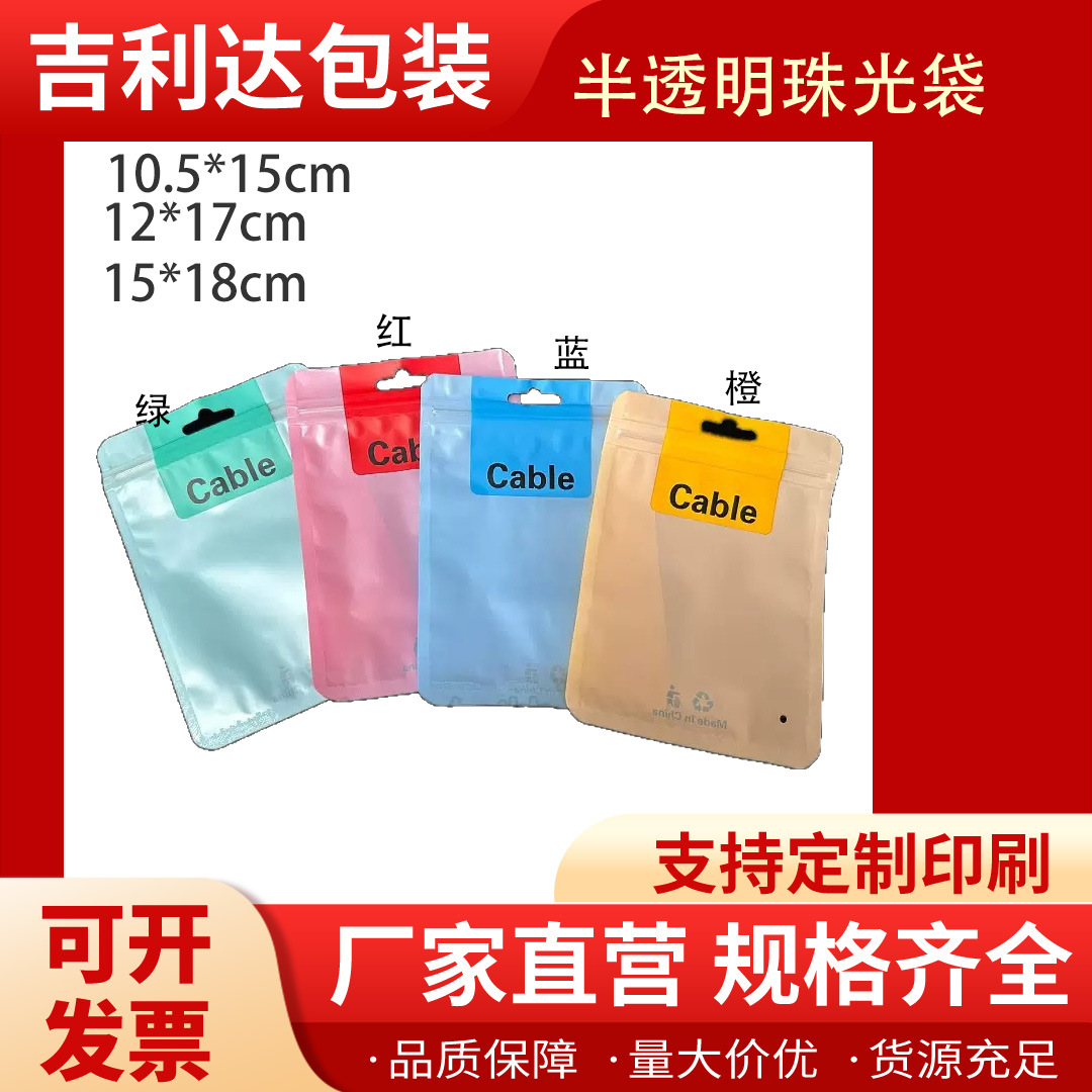 新款珠光膜磨砂面拉骨包装袋彩色标准印刷耳机数据线包装袋自封袋
