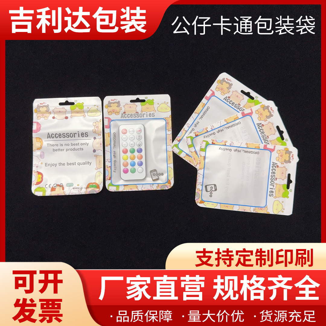 公仔卡通印刷珠光膜包装袋电子配件USB数据线耳机线袋通用拉骨袋