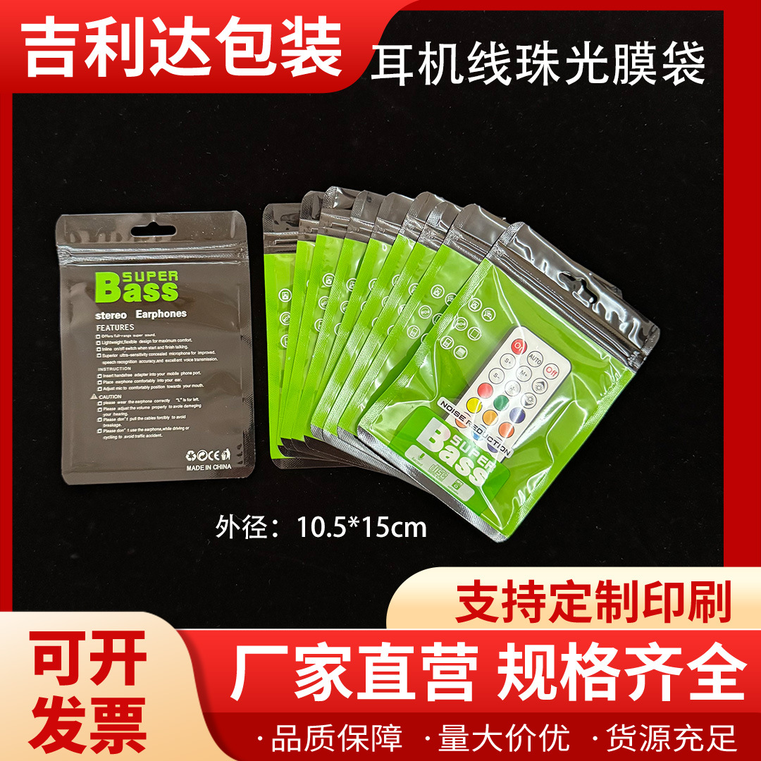 新款Bass super 耳机线包装袋U盘充电头手机配件彩色珠光膜自封袋