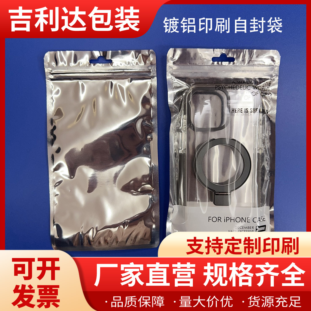 珠光膜镀铝印刷自封袋12*21.5cm 银色适合苹果手机壳 iphone case
