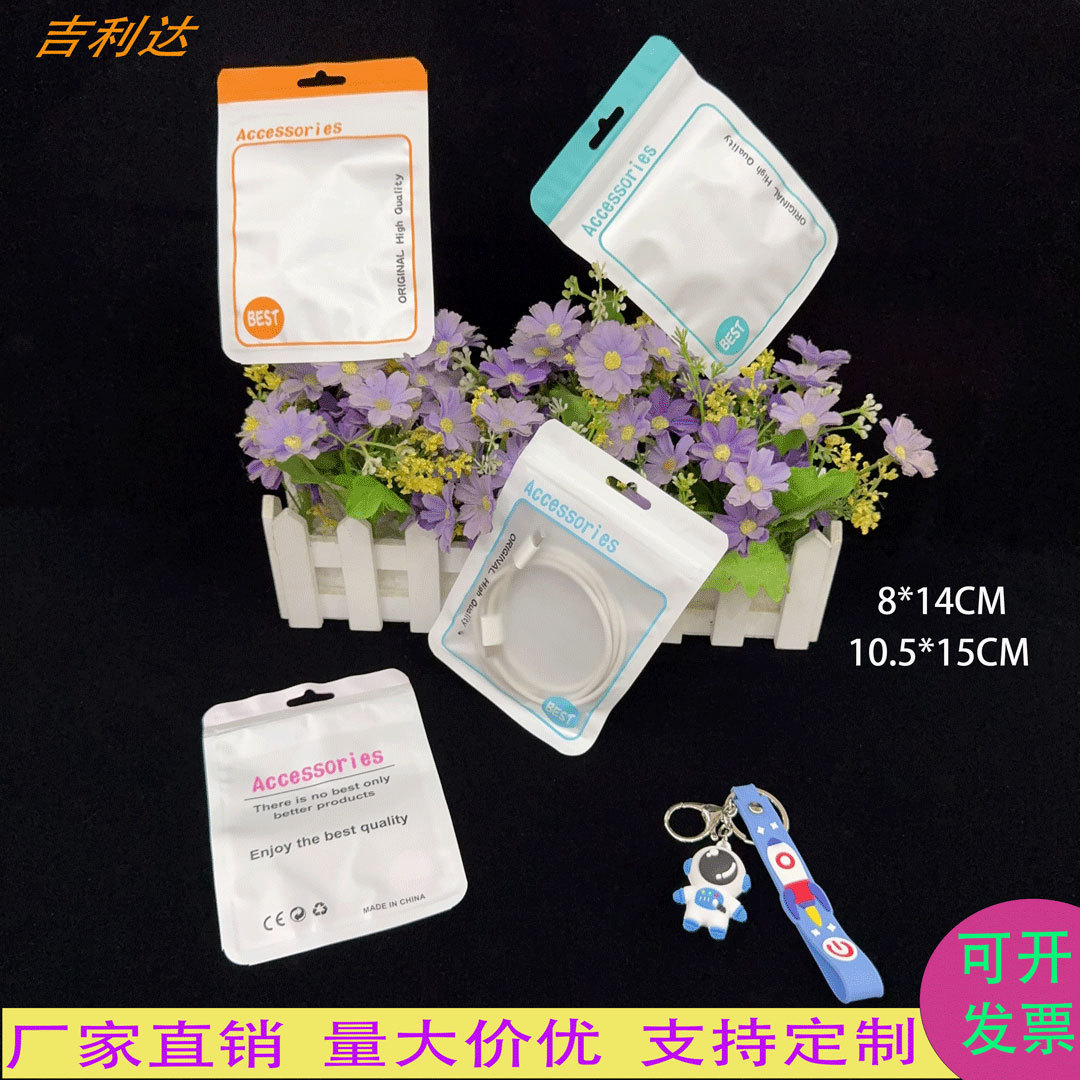新款数据线包装袋usb封口袋充电头密封袋U盘塑料自封袋珠光彩色装