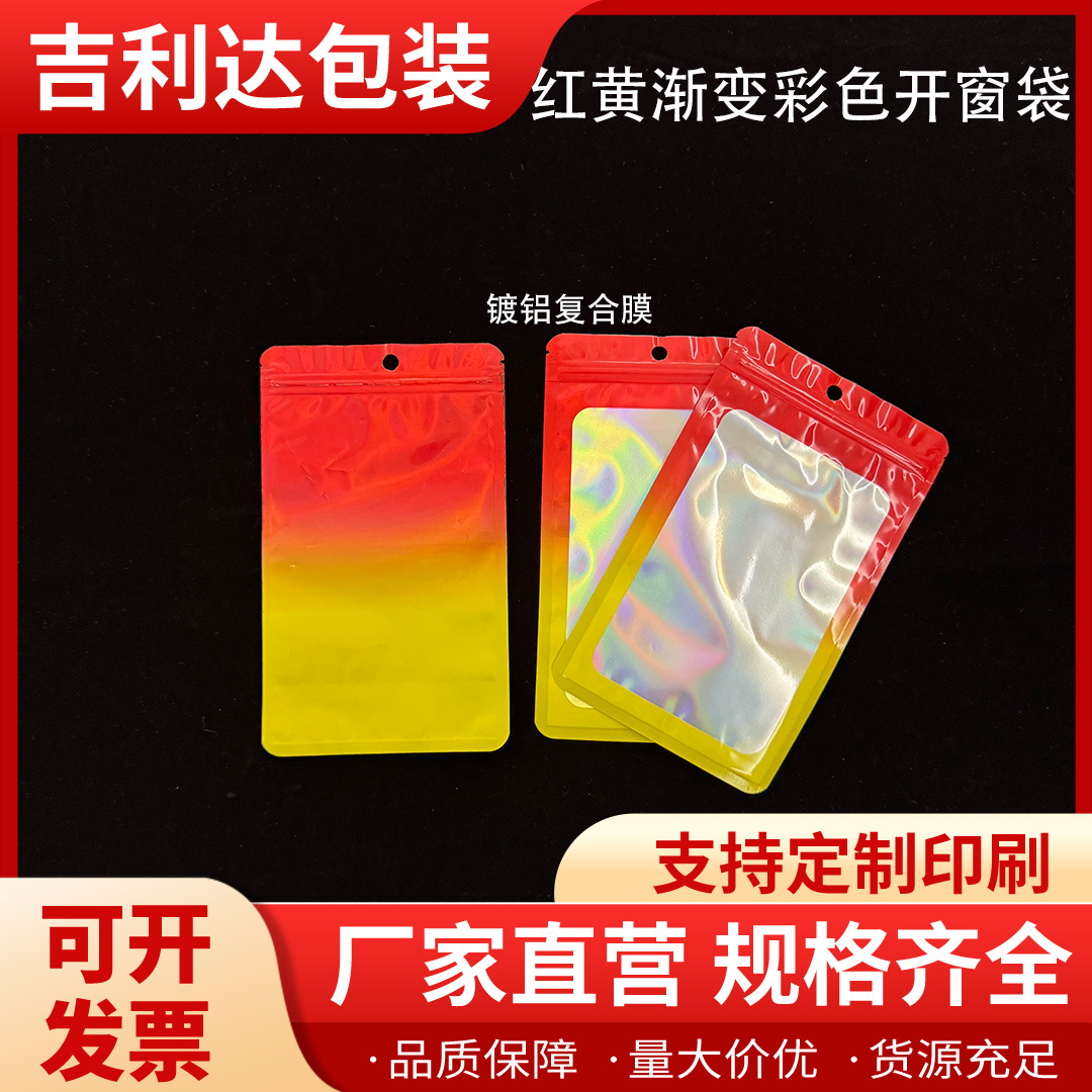 红黄彩色渐变铝箔镭射自封袋饰品包装袋美妆品U盘数据线密封袋