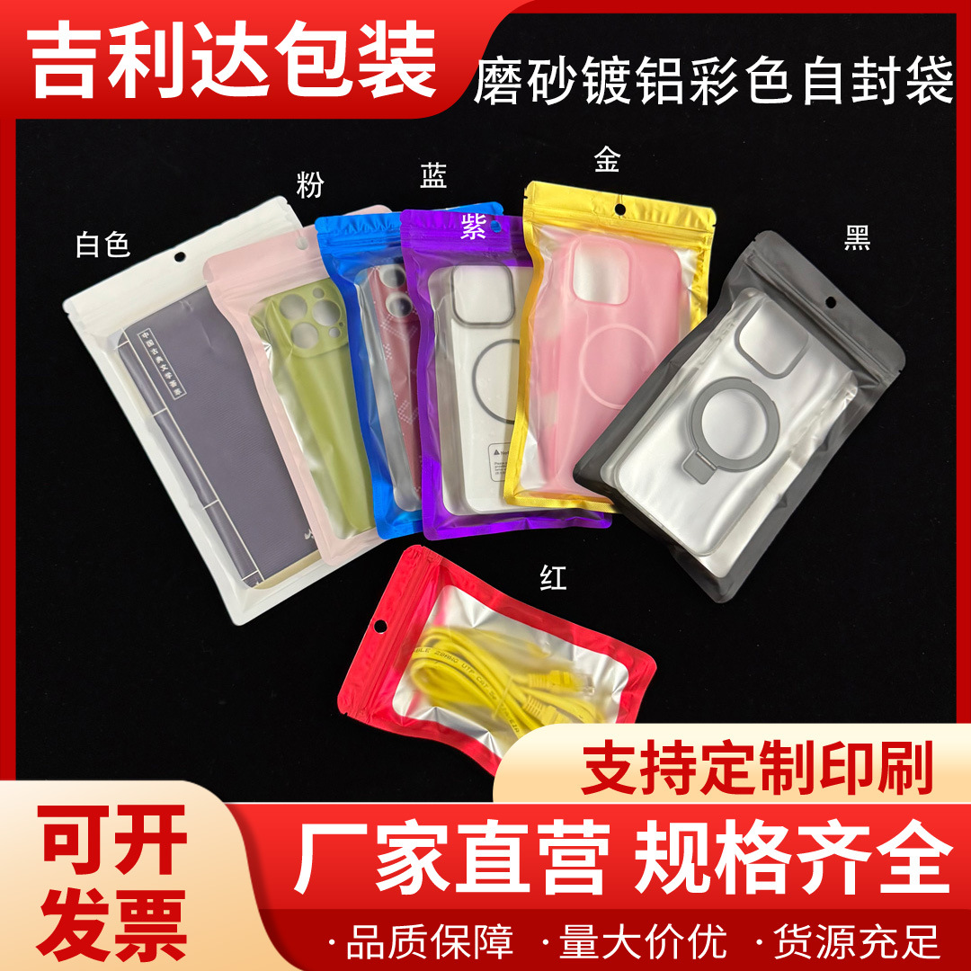 跨境镀铝彩色自封袋手机壳饰品美妆品精美包装袋食品密封袋磨砂