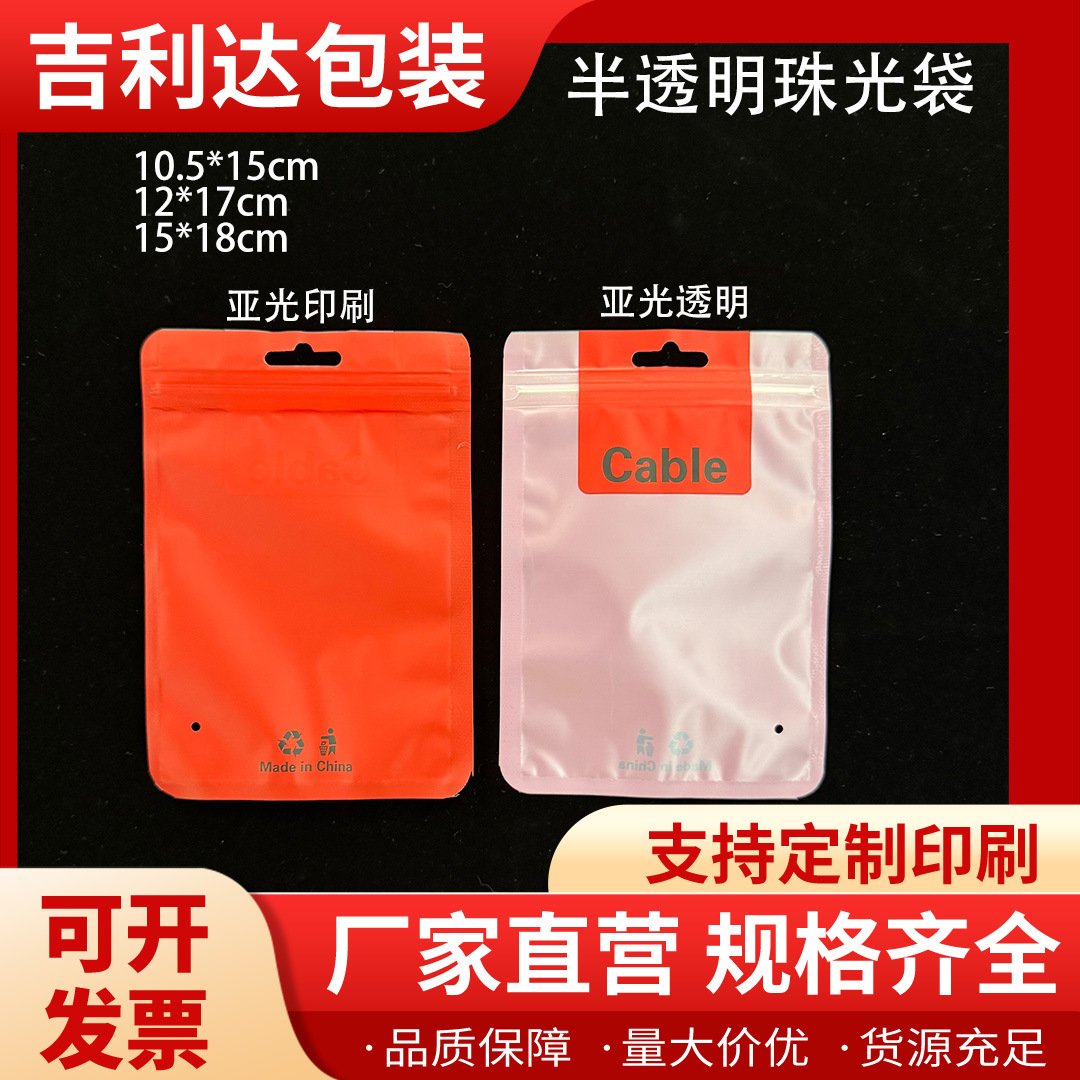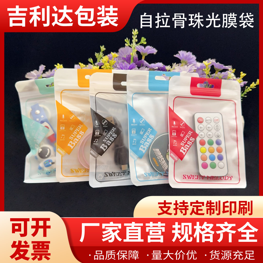 磨砂面珠光膜阴阳骨数据线包装袋手机配件充电头自封袋通用拉骨袋