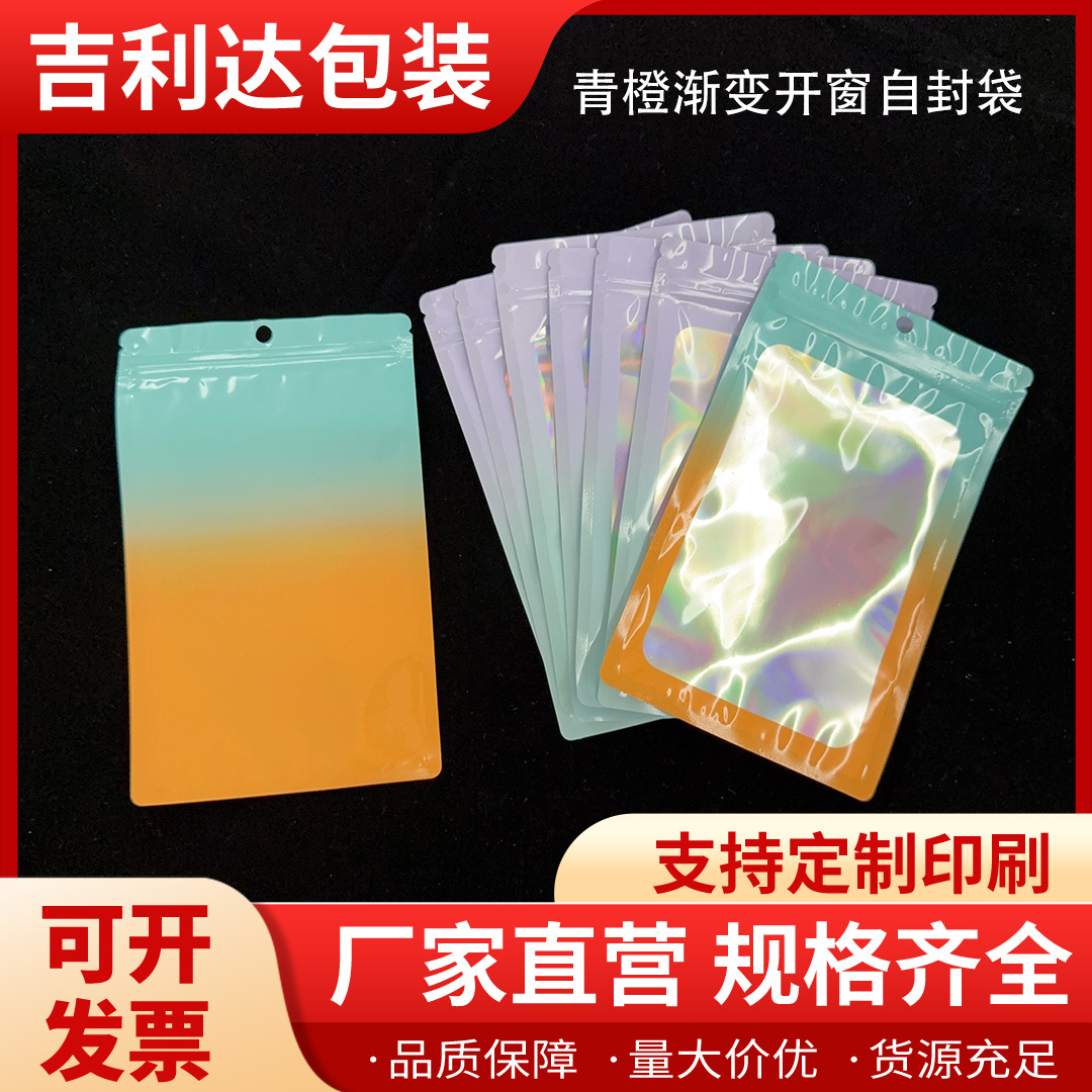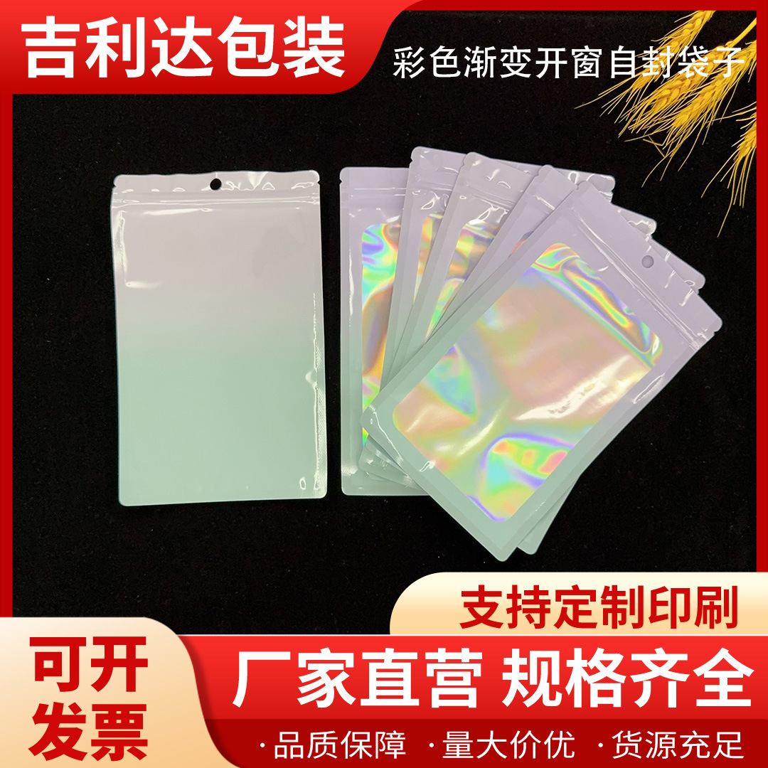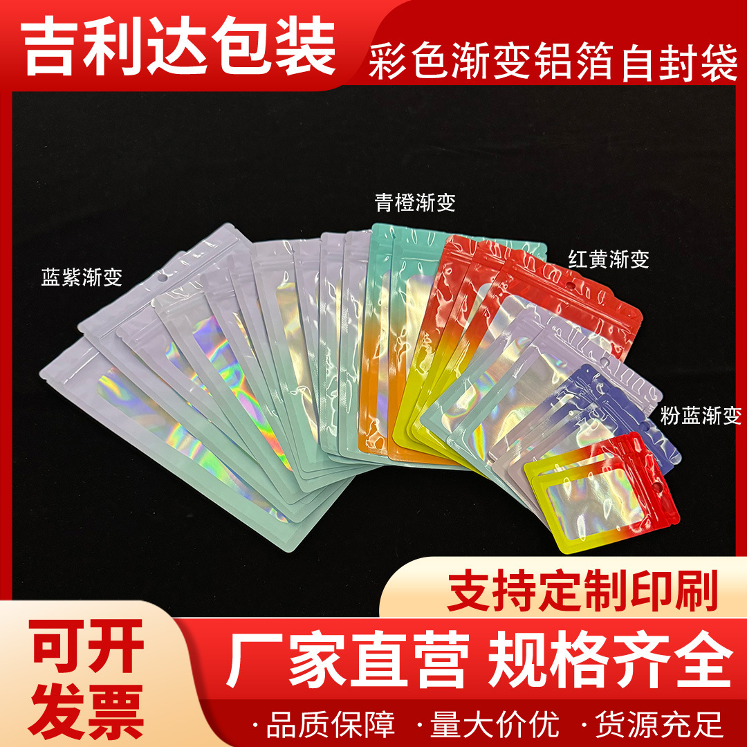 跨境彩色渐变铝箔镭射自封袋饰品礼品美妆品U盘数据线卡片包装袋