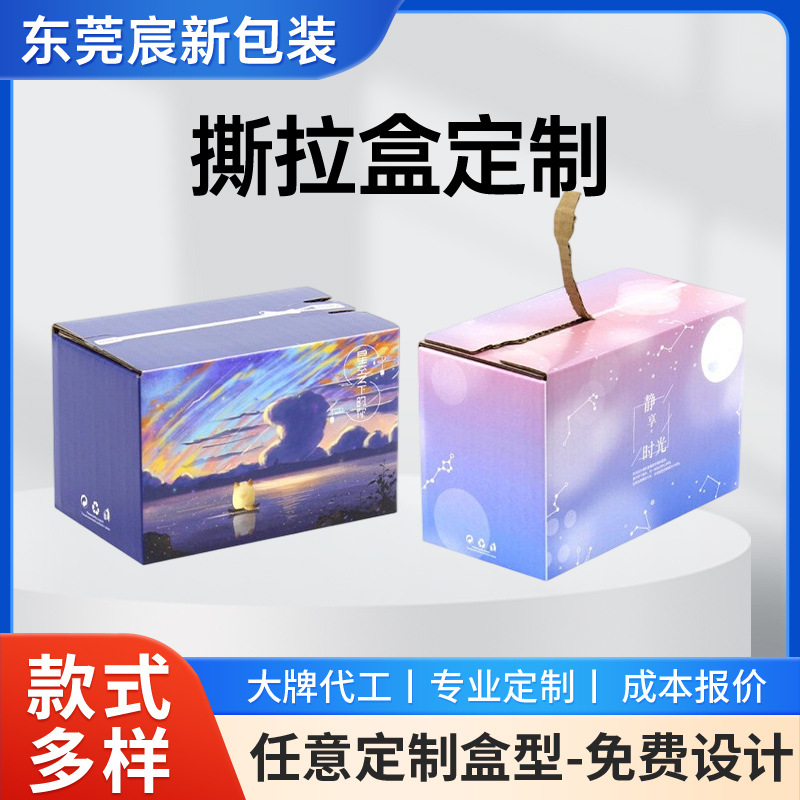 源头厂家彩色撕拉盒特硬纸箱彩箱包装拉链式彩盒礼盒