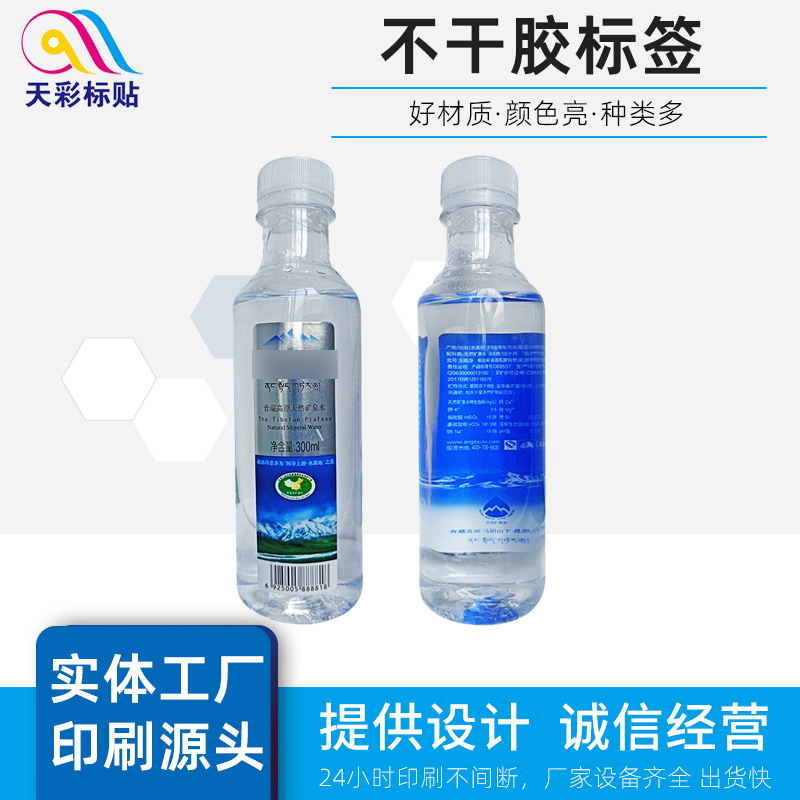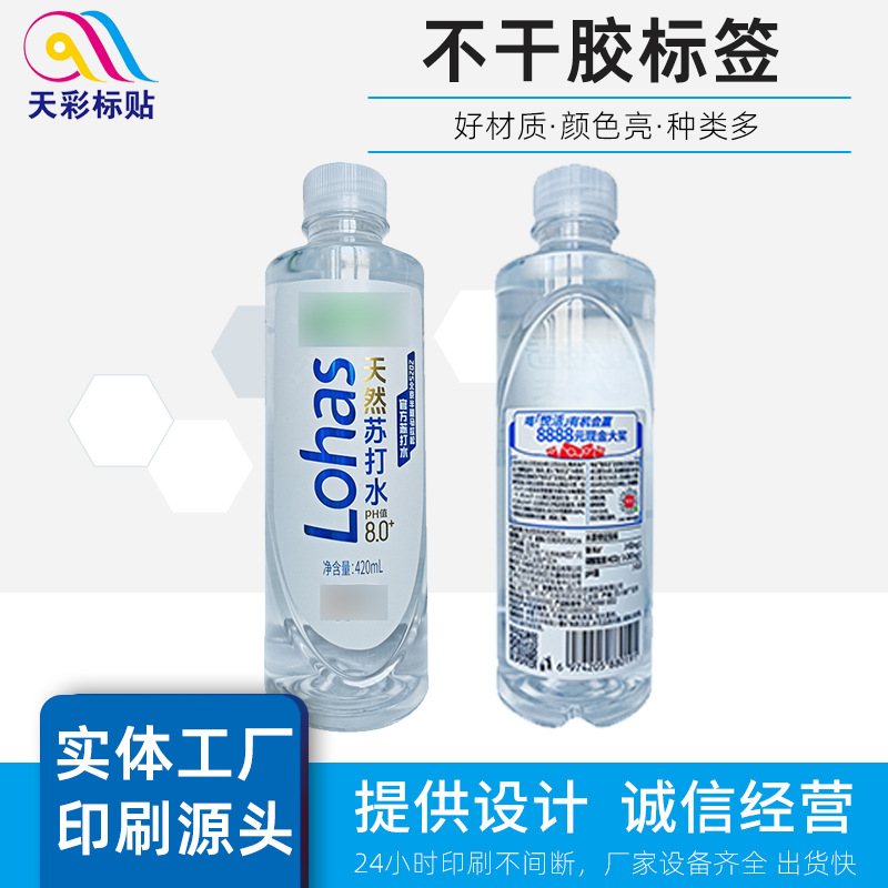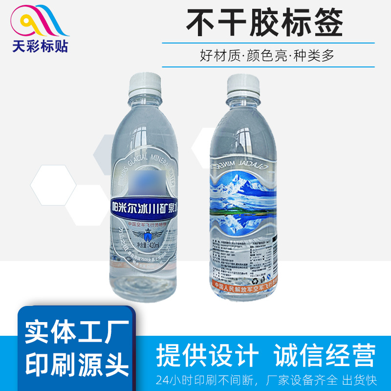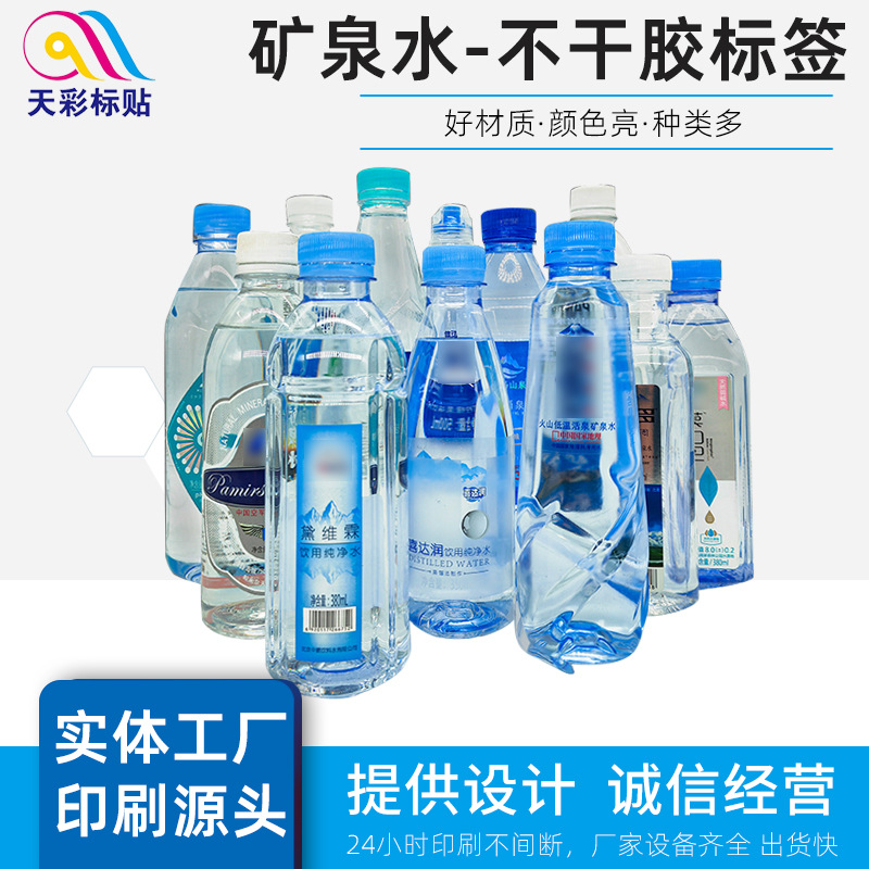 矿泉水不干胶标签贴纸BOPP合成纸覆膜烫金局部UV双面印刷丝印可定