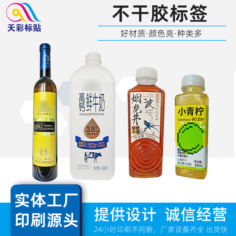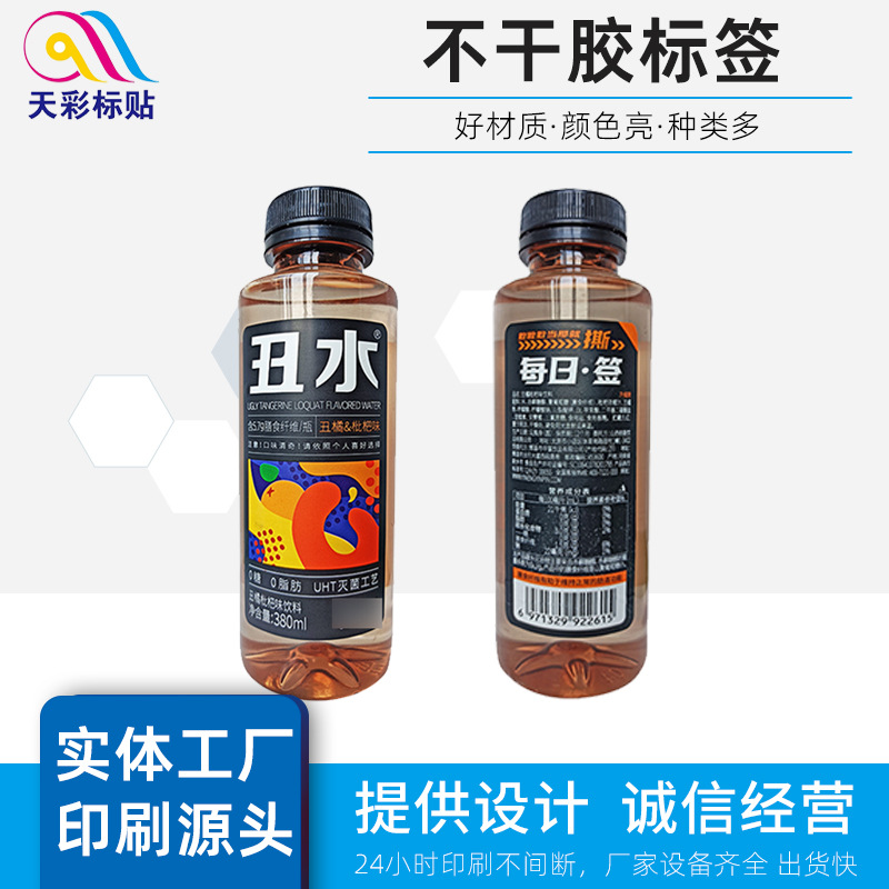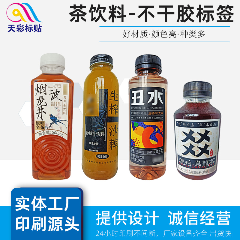 茶饮料不干胶标签BOPP合成纸双透过油覆膜烫金UV双面印刷耐磨可定