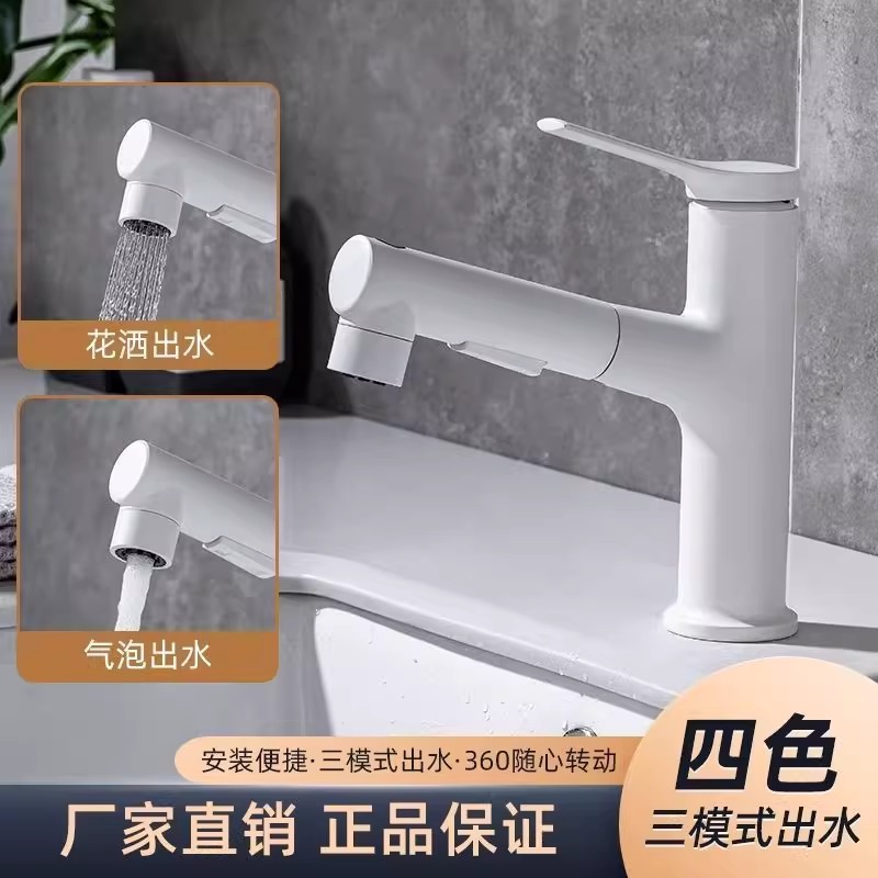 全铜抽拉面盆冷热水龙头浴室洗手盆抽拉式龙头家用冷热面盆水嘴